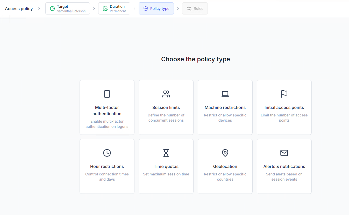 These restrictions help ensure access is appropriate and make it easy to implement SAMA requirements on privileged and remote access without frustrating end users.