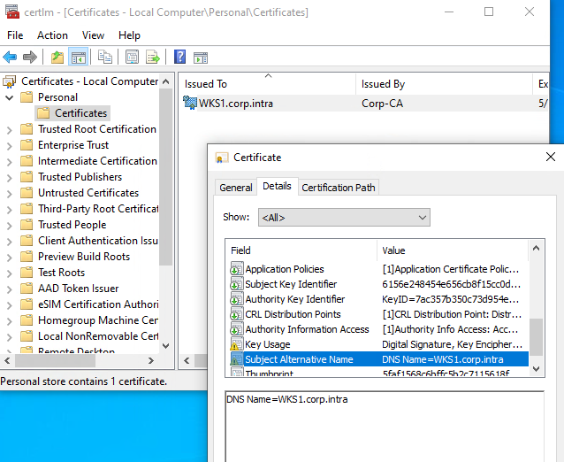 • ✅️ All laptops have a computer certificate in the Local Computer Certificate Store.