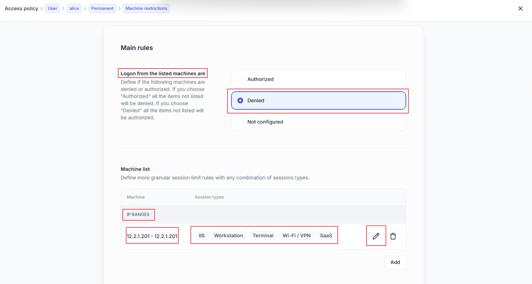 2. Edit an existing policy for your user, or create a new access policy (see Create an access policy for detailed steps).