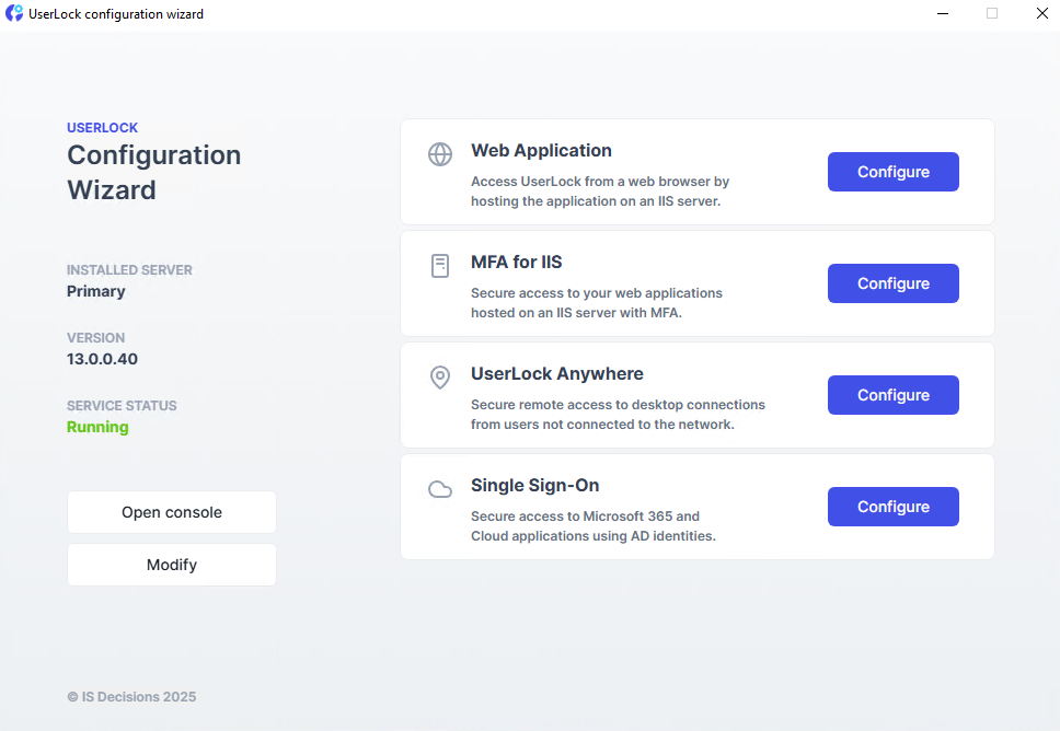 By default, the UserLock desktop administration console is installed on the main UserLock server.