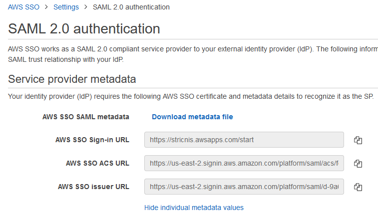 Copy / paste AWS SSO ACS URL from the AWS SSO console