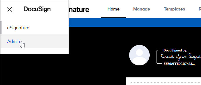 Click SWITCH TO, then select DOCUSIGN ADMIN.