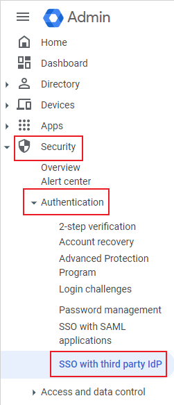 Go to Security â–¸ Authentication â–¸ SSO with third party IdP.