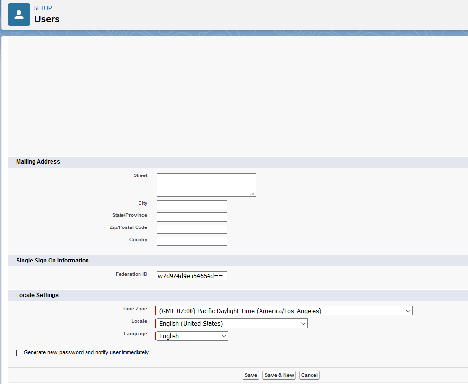 3. In the Single Sign-On Information section, set Federation ID to the AD user’s ImmutableID (or the chosen mapping attribute).