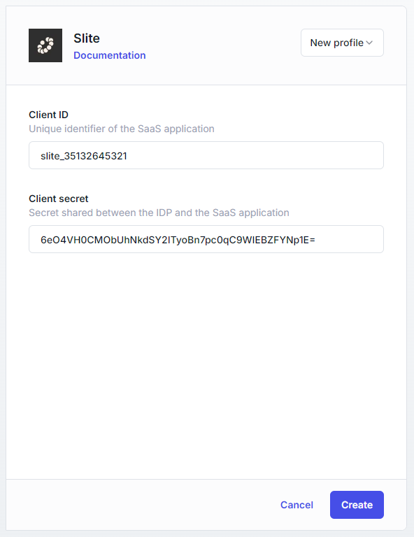 You can use the suggested secure secret or define your own.👉️ Keep both values on hand, you’ll need them when configuring Slite.