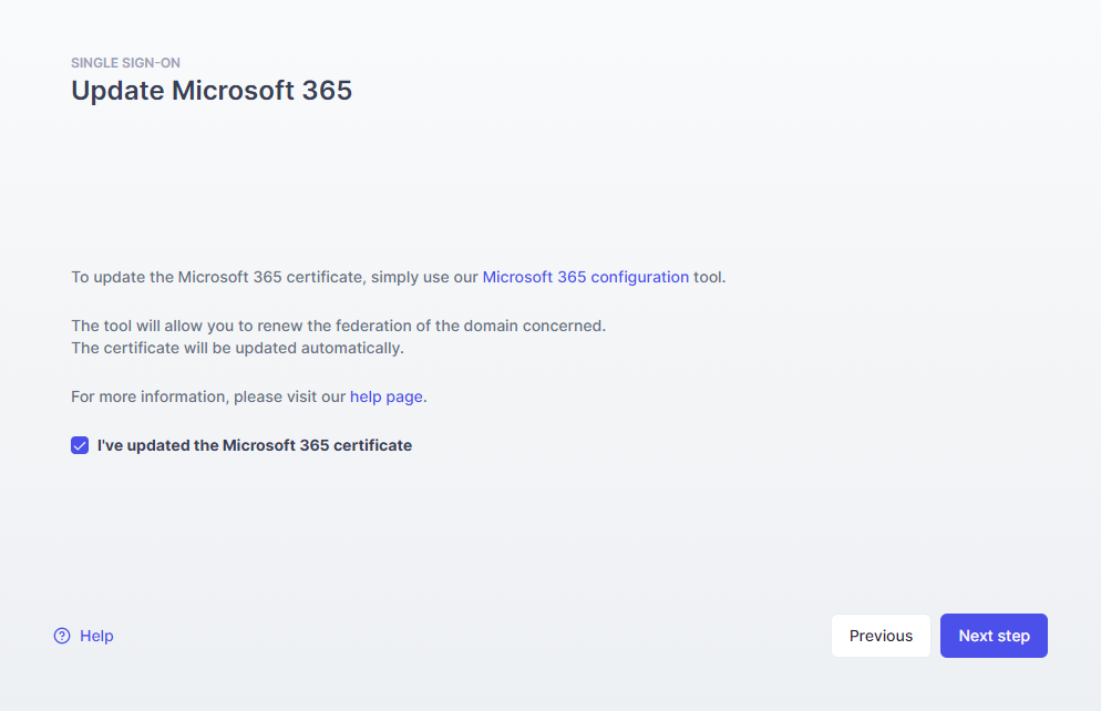 3. Tick I've updated the Microsoft 365 certificate when the operation is complete.