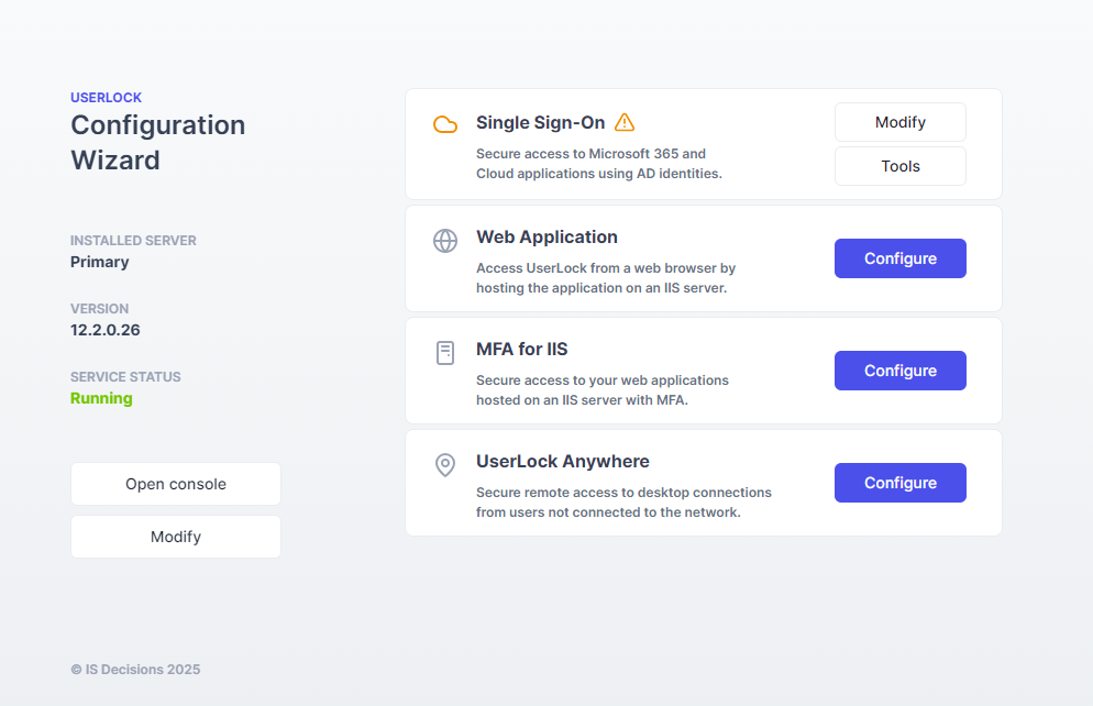 1. Open the UserLock Configuration Wizard on the server hosting the UserLock SSO service.