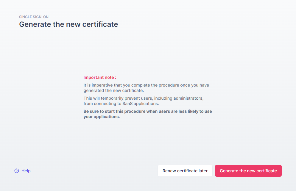 • ⚠️ Do not wait until the last moment. If the certificate expires, all SSO access will be blocked until renewal is completed.