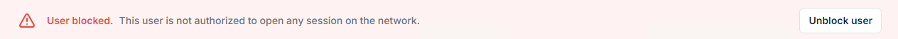 Blocking a user immediately stops their access to the network. This action is useful when detecting a malicious or risky connection, as you can quickly terminate all existing sessions and prevent any new ones.