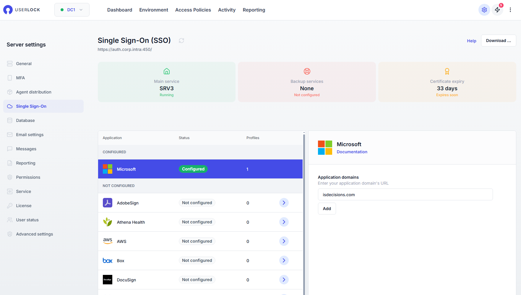 Configure UserLock Single Sign-On (SSO) to connect your users securely to cloud and web applications such as Microsoft 365, Slack, or Salesforce.