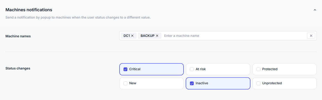 Machine popups provide instant, on-screen alerts to administrators connected to key servers or workstations. This allows rapid detection of suspicious activity without relying on email delivery or monitoring a console.