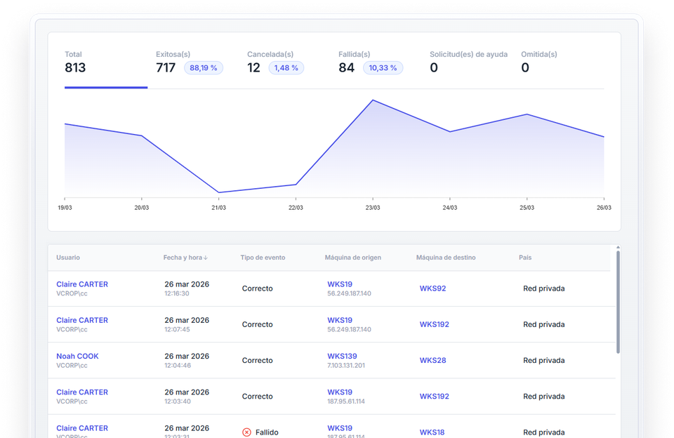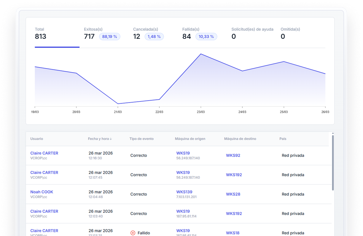 UserLock protege cada tipo de conexión en su entorno Windows, sin importar desde dónde se conecte el usuario.