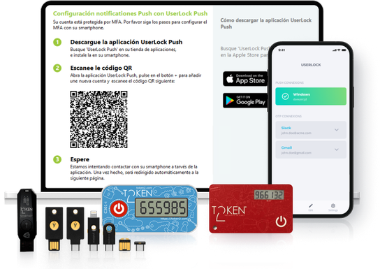Adapte los métodos de MFA al nivel de riesgo del usuario: notificaciones push, aplicaciones autenticadoras (Google Authenticator, Microsoft Authenticator) y tokens hardware (YubiKey, Token2).