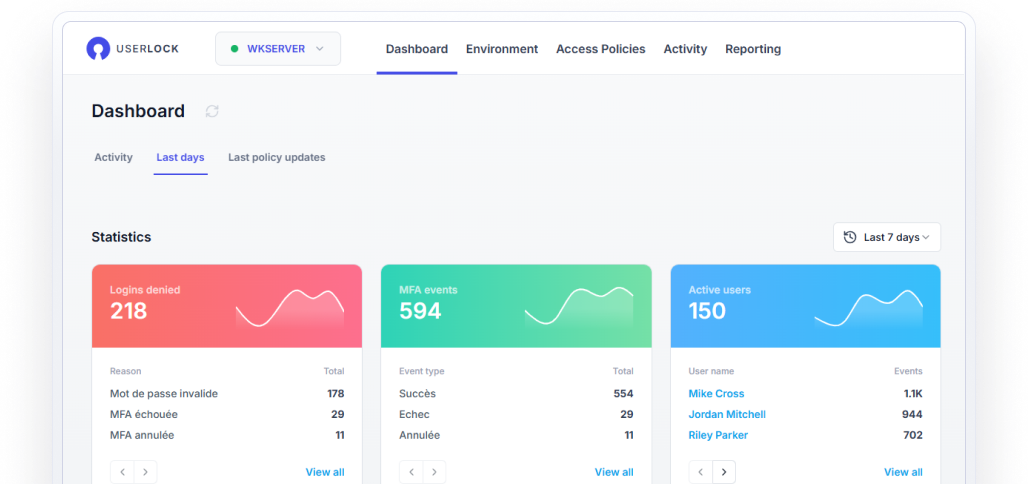 UserLock adds modern MFA and access controls to AD, giving IT full control of AD identity access to network and SaaS resources.