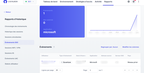 Avec un seul ensemble d'informations d'identification Active Directory pour accéder à toutes les ressources du cloud, l'authentification unique (SSO) de UserLock redonne à l'organisation le contrôle de l'accès des utilisateurs.