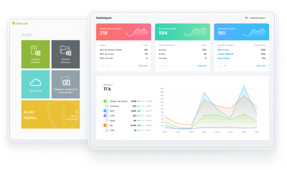 Gardez un œil sur toutes les activités d'accès aux fichiers sur les serveurs Windows et les environnements cloud en temps réel. Voyez qui a accédé à quels fichiers, quand et ce qu'ils ont fait, le tout dans un audit centralisé.
