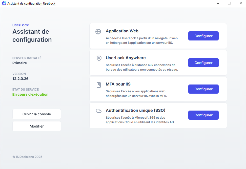 Par défaut, la console d’administration UserLock est installée localement sur le serveur principal.