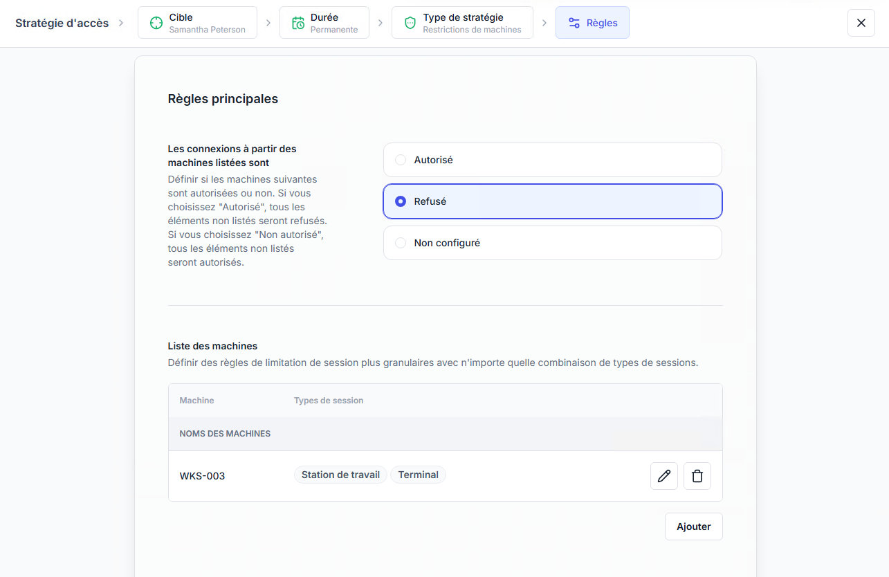 🧪️ Pour notre test rapide, nous allons configurer une simple restriction par machine :