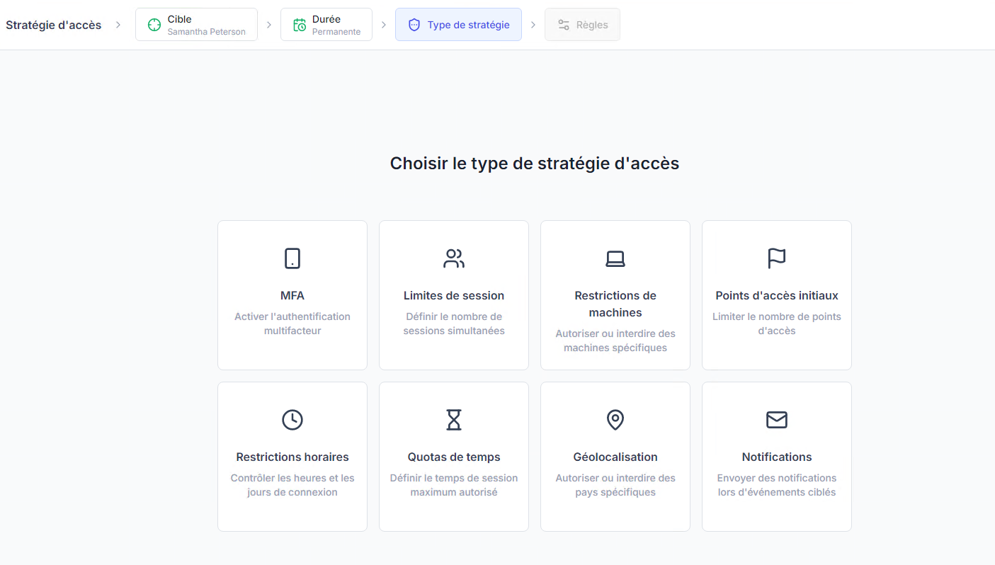Ce tutoriel vous guide pas à pas dans la création de votre première stratégie d’accès à l’aide de l’assistant de configuration.