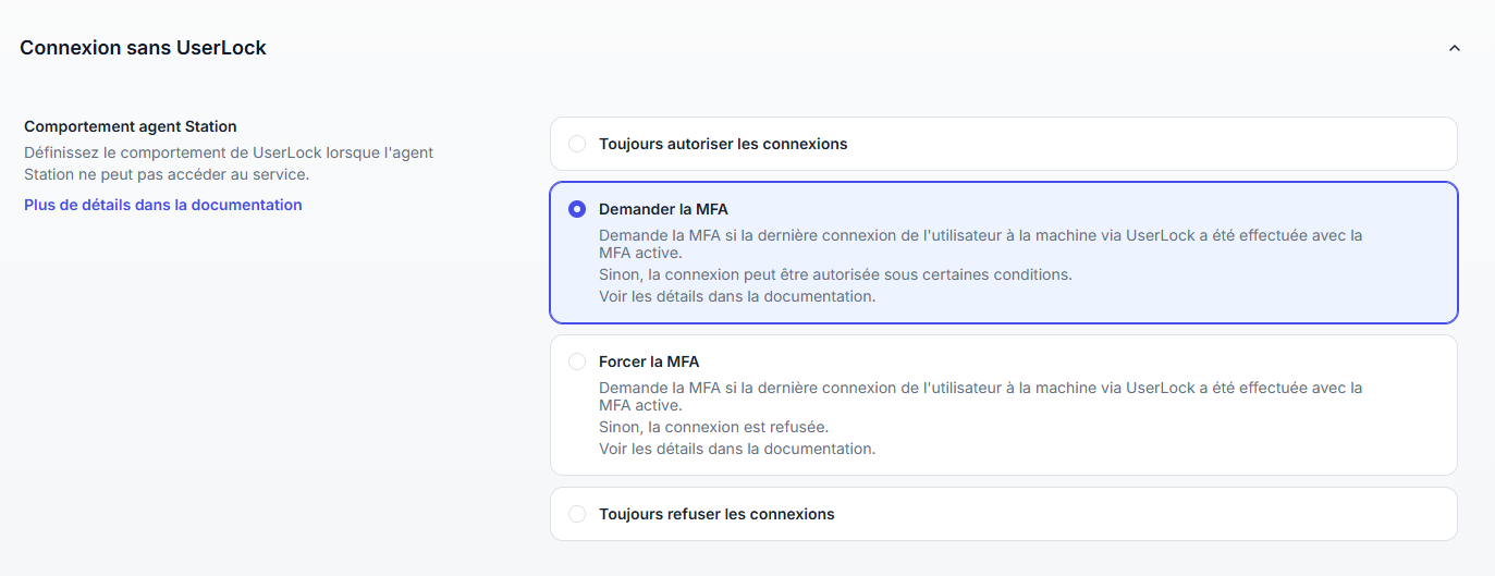 💡 Pour une explication complète des deux modes, consultez la page UserLock Anywhere.