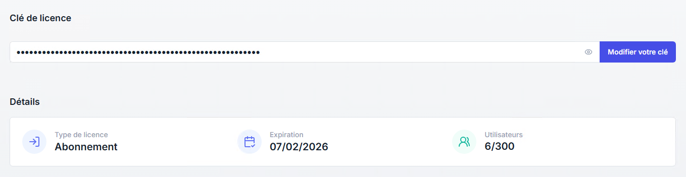 • Pour accéder à cette page, allez dans Paramètres du serveur ▸ License.