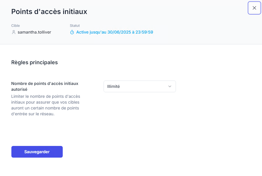 Les stratégies d'accès de UserLock peuvent être définies pour une période donnée. Pour plus d'informations, consulter la page des stratégies temporaires.