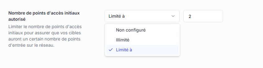 La liste de toutes les stratégies de limitation des points d’accès initiaux est disponible dans la section Stratégies d’accès, page Points d’accès initiaux.