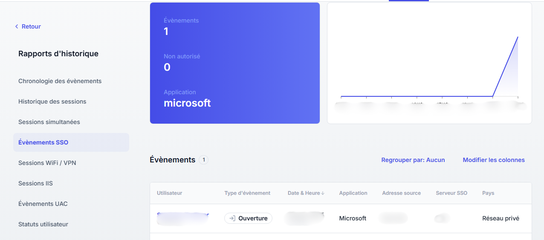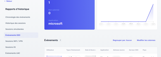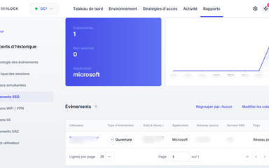 Suivez les connexions aux services SaaS et à l’AD local pour assurer la conformité et renforcer la sécurité. Détectez les comportements suspects et bloquez instantanément une session ou un utilisateur.